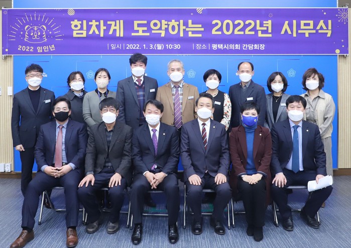 [로컬세계 김병민 기자]경기 평택시의회(의장 홍선의)는 3일 시의회 의장실에서 2022년 시무식을 갖고 새해 의정활동의 의지를 다졌다.