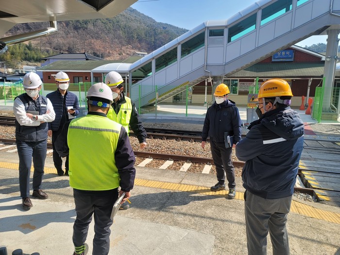 [로컬세계 부산=맹화찬 기자]한국철도 부산경남본부는 8일 국가철도공단이 함께 사용 개시를 앞두고 있는 경부선 상동역의 보행육교에 대해 막바지 합동안전점검을 시행했다.