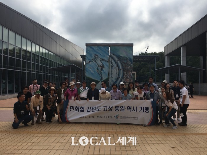 [로컬세계 고기훈 기자]평양에서 역사적인 남북정상회담이 진행 중인 가운데 민족화해협력범국민협의회(이하 민화협)는 지난 19일 강원도 고성 일대에서 DMZ 통일기행 행사를 열었다.