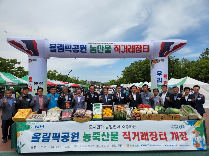 농협(회장 이성희) 서울지역본부는 국민체육진흥공단(이사장 조현재), 한국체육산업개발(주)(대표이사 김사엽)과 함께 14일부터 15일까지 이틀간 올림픽공원 만남의 광장에서 ‘코로나19 극복을 위한 농업인 돕기, 올림픽공원 농축산물 직거래장터’를 개장했다.