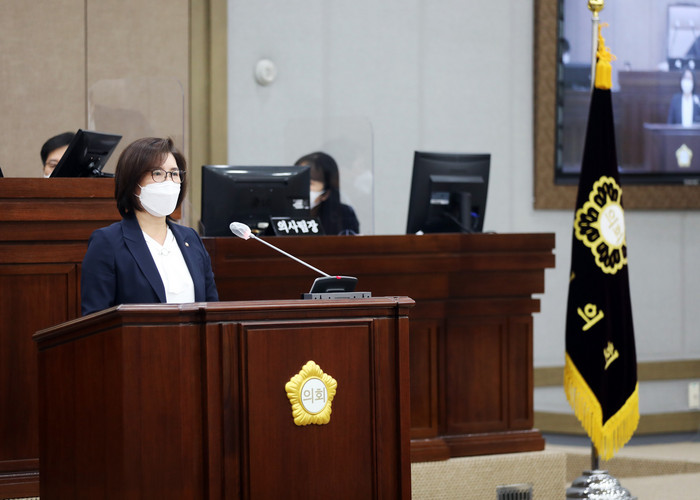 ▲황경희 의원이 5분 발언을 하고 있다. 수원시의회 제공 |