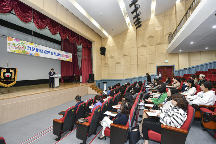 김포여성공인중개사는 지난 17일 김포시 평생학습관 대강당에서 김병수 김포시장을 초청해 월례회를 개최했다. 이날 회의는 주로 김포시의 주요 개발계획 및 시정 현안에 대한 질의응답으로 이뤄졌고, 김포여성공인중개사 회원이 질의하면 김병수 시장이 그에 대해 응답하는 방식으로 이뤄졌다.