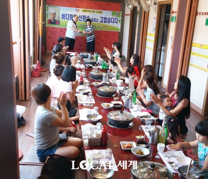 이날 식사제공은 바다황제 신환수 대표가 다문화가족지원봉사단 김남숙 단장에게 제의한 뒤 이뤄졌다.