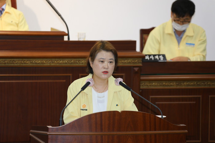 첫 번째 질문자로 나선 박화자 의원은 코로나19 이후 사회변화와 정책방안에 대한 심포지엄 개최 등 군민들의 불편함 해소와 앞으로의 대응책에 대한 '코로나19 감염병 등 향후 방역체계 구축방안'에 대해 부군수에게 답변을 요구했다.