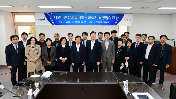 [로컬세계=강상국 기자] 권칠승 더불어민주당 화성병지역위원장과 정명근 화성시장이 지난달 31일 근로자종합복지관에서 당정협의회를 열었다.