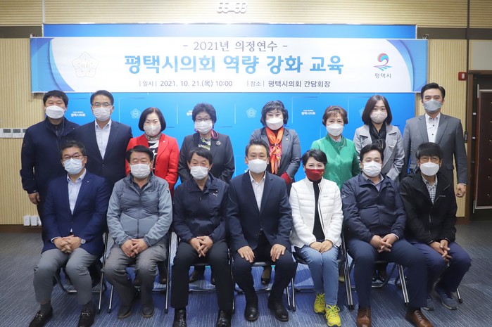 [로컬세계 김병민 기자]경기 평택시의회(의장 홍선의)는 운영위원회(위원장 유승영) 주관으로 의원과 의정수행 공직자 간 일체감 조성과 의원 역량강화를 위한 ‘2021년 하반기 의정연수’를 21일 평택시의회 3층 간담회장에서 실시했다.