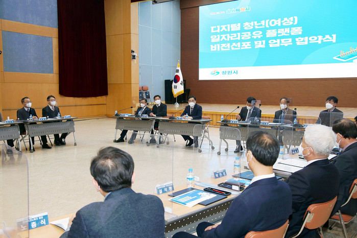 ▲지난달 24일 열린 디지털 청년일자리 공유플랫폼 비전 선포식 모습. 창원시 제공 |