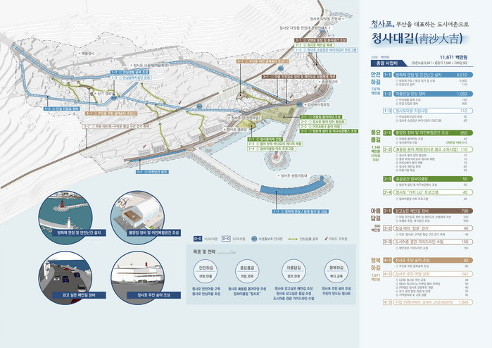 또 청사포 주진입로와 해안길을 정비해 보행환경을 개선하고 주민 복지 관련 교육, 안전조업 교육을 시행한다.