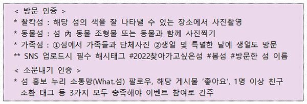 행안부 누리 소통망과 한국섬진흥원에서 운영하는 섬 홍보 누리 소통망에서는 경품 행사도 진행한다. 봄 섬 9곳을 방문해 인증하거나 섬 홍보 누리 소통망 팔로우 및 소문내기 인증을 하면 아이패드 등 경품을 제공한다.