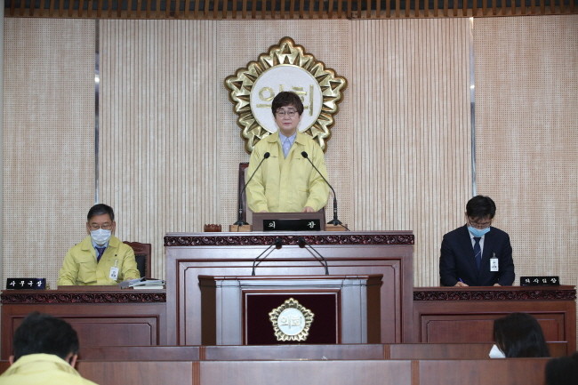 이날 임시회는 코로나19로 위기에 처한 주민의 생계지원과 경기부양을 위한 위기극복지원금 관련 안건처리를 위해 긴급 소집됐다.