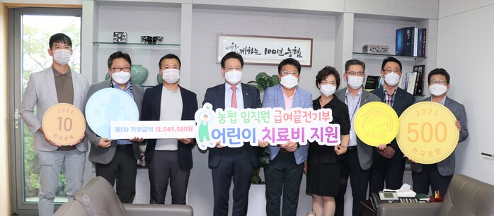 이재식 농협 부회장은 “임직원들의 자율적인 참여로 마련한 기부금으로 어려움을 겪고 있는 어린이들과 가족에게 희망과 용기를 전하게 되어 뜻깊다”며 “앞으로도 농업인·국민과 '함께하는 100년 농협'을 이루어 가기 위해 최선을 다하겠다”고 말했다.