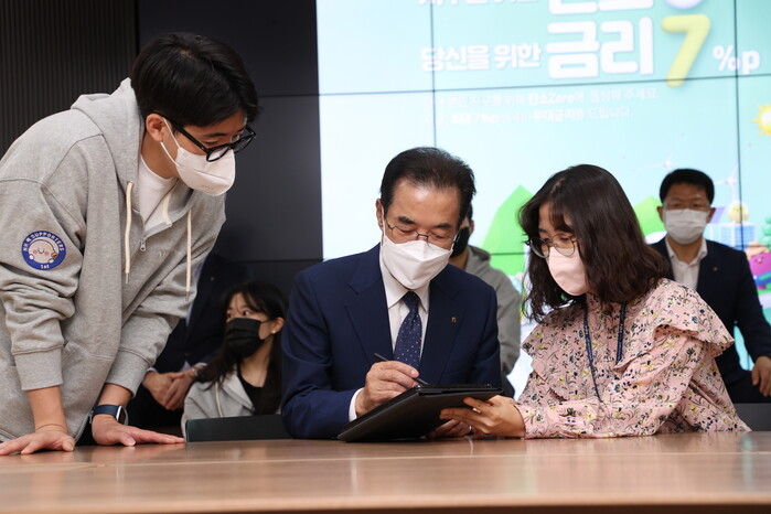 이성희 회장은 “날씨는 농작물의 생육에 직접 영향을 주는 요인인 만큼 나날이 심화되는 기후위기에 대응하는 것은 우리 농업·농촌의 지속가능성을 확보하는 것과 직결된 아주 중요한 일”이라며, “이번 '탄소Zero챌린지적금'을 통해 탄소중립 실천에 함께할 수 있어 매우 기쁘게 생각하며, 농협은 앞으로도 사회적 책임을 지속적으로 다하여 국민과 ‘함께하는 100년 농협’을 구현하겠다”고 말했다.