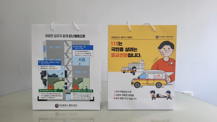 [로컬세계 부산=김민호 기자]부산 중부소방서는 자체 제작한 쇼핑백을 활용하여 아파트 화재 피난행동요령 홍보에 나선다고 27일 밝혔다.