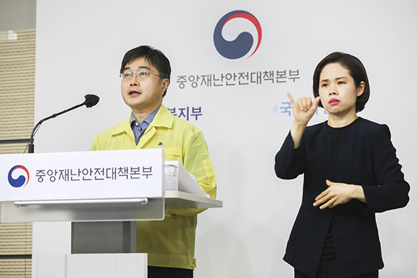 ▲윤태호 중앙사고수습본부 방역총괄반장이 중앙재난안전대책본부 정례브리핑을 하고 있다. (사진=보건복지부) |