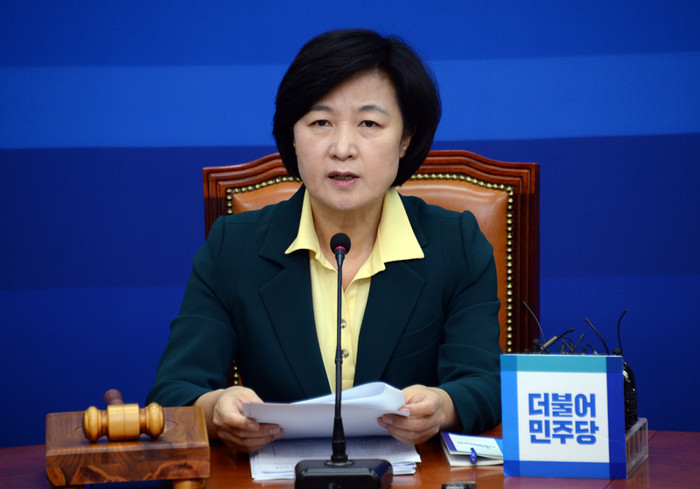 ▲추미애 더불어민주당 대표가 21일 국회에서 열린 최고위원회의에서 국회의 탄핵 의결이 이뤄질 경우 현재 드러난 대통령의 범죄 혐의만 헌법재판소가 정상적 판단을 하면 탄핵은 이뤄질 것이라고 이야기 하고 있다. 민주당 제공. |