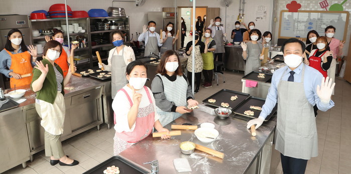 장현국 의장은 이날 ‘찾아가는 현장 도의회’ 정책의 일환으로 안산시다문화가족지원센터를 방문해 결혼이민자 10명과 취·창업 프로그램인 ‘빵 만들기’ 과정에 참여하고, 정담회를 통해 다문화 가족의 애로 사항에 대해 이야기를 나눴다.
