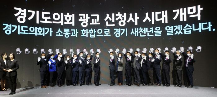 이와 함께 주요 참석자들이 LED 스크린에 손을 대자 ‘경기도의회 광교 신청사 시대 개막’이라는 메시지가 송출되는 형태의 축하의식이 연이어 실시됐다.