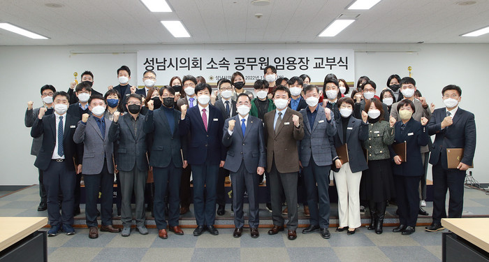 [로컬세계 김병민 기자]경기 성남시의회(의장 윤창근)는 13일 의회 4층 세미나실에서 지방의회 인사권 독립에 따라 의회사무국 전입 직원 32명에 대한 임용장을 교부했다고 밝혔다.
