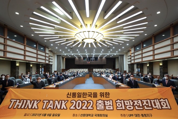 UPF(천주평화연합) 대전 충청지구(회장 유경득)는 충남 천안의 선문대 국제회의실과 충북 청주의 그랜드플라자 호텔에서 각각 ‘신통일한국을 위한 Think Tank 2022 출범 희망전진대회’를 진행했다고 9일 밝혔다.