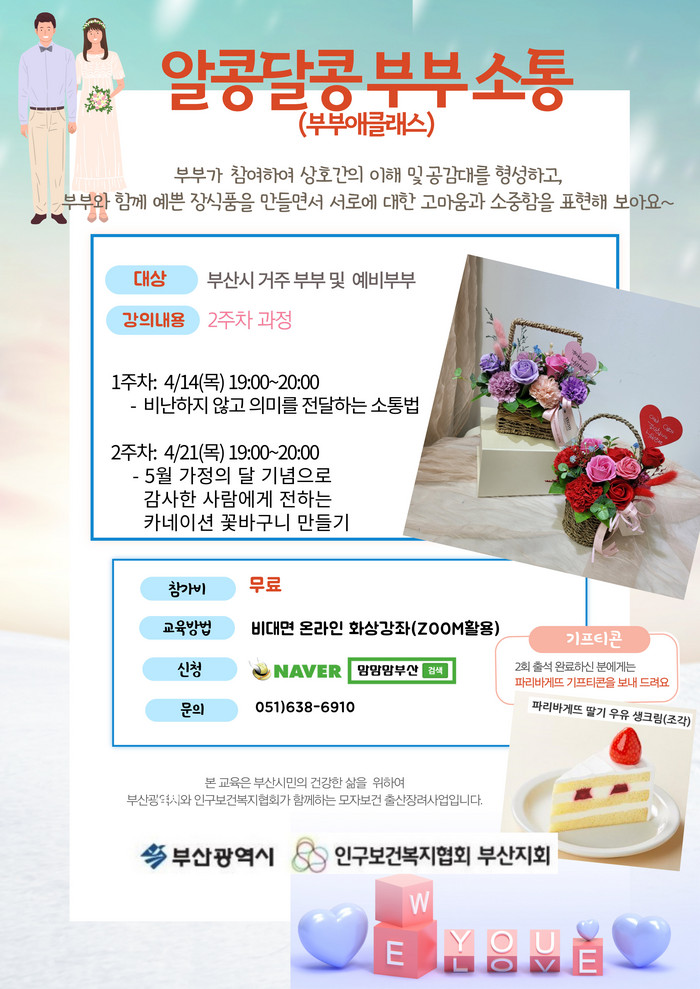 부부 및 예비부부 대상으로『알콩달콩 부부 소통』교육을 온라인