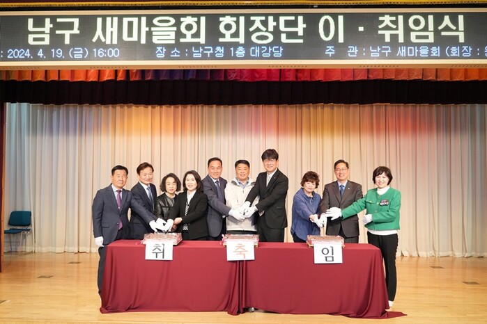 새로 취임하신 윤형곤 새마을회 회장은 “이임 회장단에서 잘 닦아 놓으신 기반을 바탕으로 남구새마을회가 근면·자조·협동의 새마을정신으로 더욱 발전하고 한 층 더 성장하는 국민운동단체로 만들겠다.”고 포부를 밝혔다.