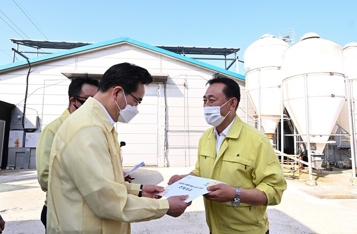 이번 현장점검은 장마 이후 무더운 날씨가 지속됨에 따라 여름철 축사·농장 관리대책 현황을 살펴보고 농민들의 건의 및 애로사항을 청취하기 위해 마렸됐으며, 축산·농업분야 폭염 대비상황을 보고받은 뒤 관계자들을 격려하며 폭염으로 인한 피해가 최소화될 수 있도록 철저한 점검관리에 힘써줄 것을 당부했다.