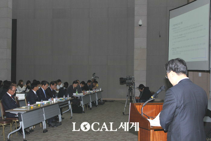 ▲29일 세종시 정부세종컨벤션센터에서 열린 지방자치 20년 대토론회에서 이승종 서울대학교 행정대학원 교수는 ‘한국지방자치의 발전방향’이라는 기조강연을 하고 있다. 오영균 기자. |