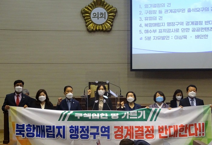 [로컬세계 맹화찬 기자]부산시 동구의회(의장 김성식)는 24일 개최된 제295회 동구의회 임시회 1차 본회의에서 공동으로 '북항매립지 행정구역 경계결정 반대 결의안'을 채택했다.