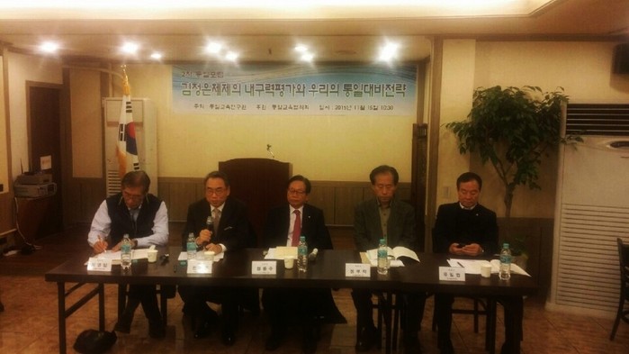 통일교육연구원이 주최하고 통일부 통일교육협의회가 후원하는 ‘김정은 권력 내구력 평가와 통일대비전략’라는 주제의 세미나가 15일 한일장 세미나룸에서 100여명의 통일동우회원들이 참여한 가운데 개최됐다.