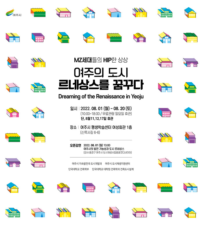 이번 전시는 오전10시부터 오후 6시까지 관람이 가능하며, 휴무일등 기타 궁금한 사항은 여주시 도시개발과 도시재생팀으로 문의하면 된다.