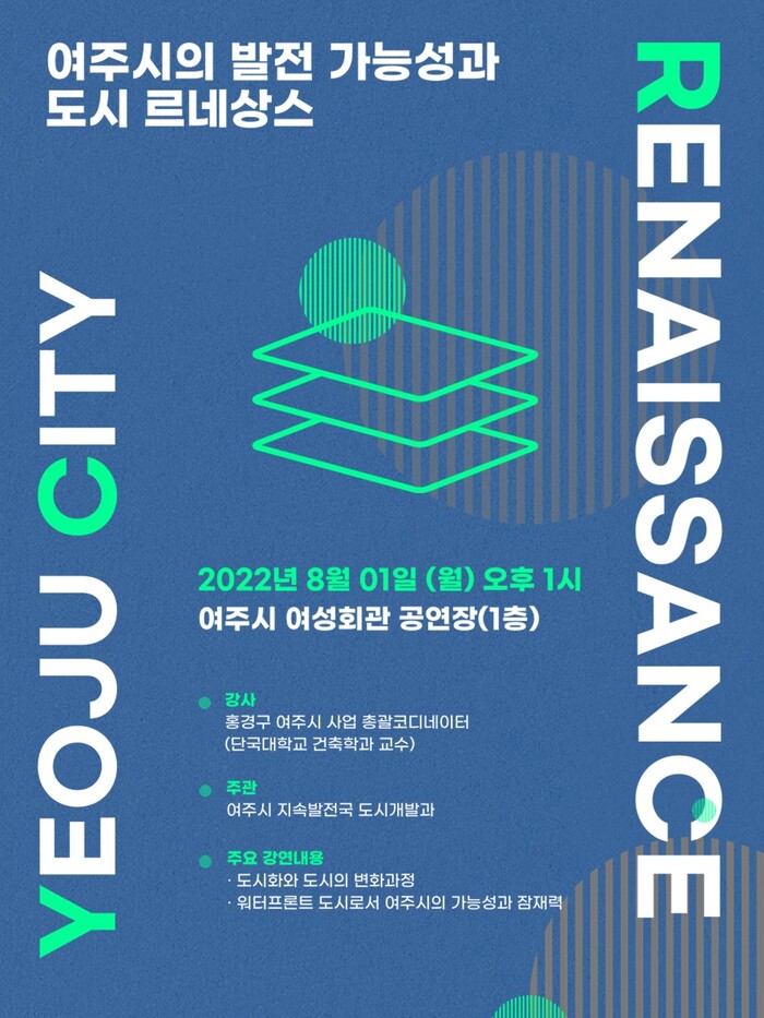 전시회 개최 당일 우리시 도시재생 사업총괄코디네이터로 위촉된 홍경구 교수(단국대 건축학과)가 “여주시의 발전 가능성과 도시 르네상스”를 주제로 여주시의 도시변화과정, 여주시의 자산, 가능성과 잠재력에 대해 강연할 예정이다.