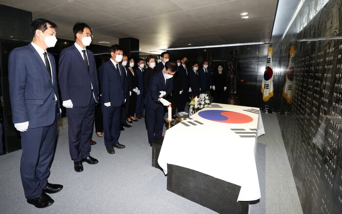염 의장과 남경순(국민의힘, 수원1)·김판수(더민주, 군포4) 부의장은 이날 오전 수원시 현충탑에서 순국선열의 넋을 기리며 공식활동에 들어갔다.