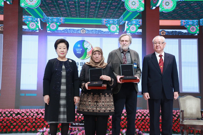 수상자에게는 각 50만 달러의 상금과 메달이 수여됐으며 설립자인 한학자 총재와 홍일식 선학평화상위원회 위원장이 각각 메달과 상패를 수여했다.