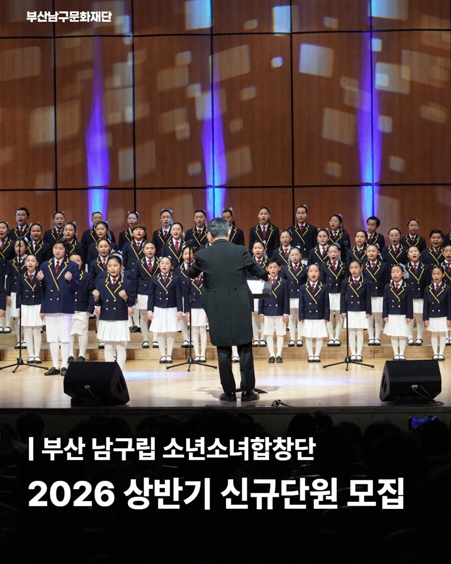 (재)부산남구문화재단은 남구립 소년소녀합창단 신규 단원을 오는 17일까지 모집한다고 6일 밝혔다.