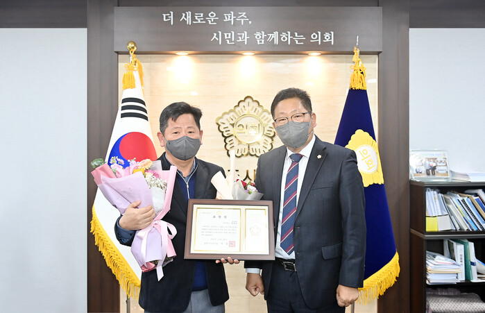 [로컬세계 = 이영원 기자]경기 파주시의회는 지난달 30일 이달의 칭찬공무원으로 이성철 의장이 추천한 정용언 팀장(하수도과, 시설6급)이 선정됐다고 2일 밝혔다.