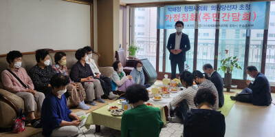 ▲경남 창원시 반송동지역의 당선인 초청 소통하는 '주민간담회 가정집회' 모습. |