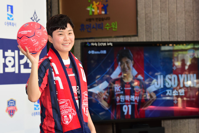 지소연은 “수원FC는 전 소속팀인 첼시(잉글랜드)와 같은 형태로 남자팀과 여자팀을 함께 운영하는 점이 마음에 들어 입단을 결심했다”며 “수원FC 위민에서 뛸 수 있도록 기회를 주신 수원시와 김호곤 수원FC 단장님께 감사드린다”고 말했다. 이어 “해외 리그에서 뛰면서 쌓은 경험을 후배들에게 공유하면서 좋은 영향을 주고 싶다”고 밝혔다.