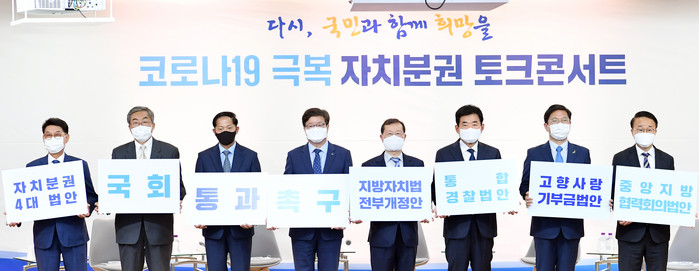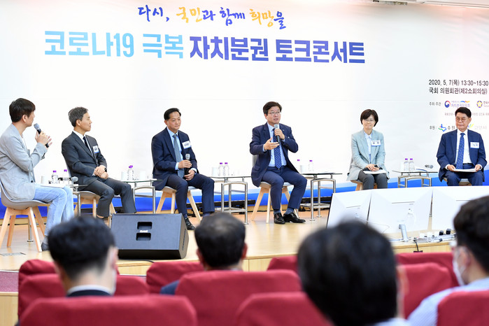 전국시장군수구청장협의회와 자치분권위원회, 국회코로나19대책특별위원회, 박광온 국회의원이 주최한 ‘코로나19 극복 자치분권 토크콘서트’가 7일 오후 1시30분 국회 의원회관 제2소회의실에서 개최됐다.