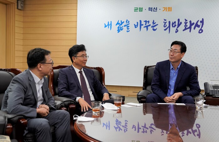 [로컬세계=강상국 기자] 정명근 화성시장은 25일 세계아동도서협회 장민조우 회장과 협성대학교 아시아교류원 송기출 원장을 만나 한중교류 활성화를 위한 대담을 나눴다.