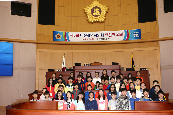 ‘어린이 의회’는 미래의 주역인 어린이(초등학생 4∼6년)들이 지방의회의 기능과 역할에 대해 배우고 풀뿌리 민주주의를 직접 체험하면서 지방자치에 대한 이해를 증진할 수 있도록 대전시의회에서 2014년도에 처음 시작해 이날 다섯 번째로 마련됐다.