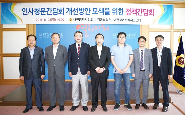 [로컬세계 조윤찬 기자]김동섭 대전시의원(더민주·유성구2)은 23일 대전참여자치시민연대 공동주관으로 대전시의회 대회의실에서 ‘인사청문간담회 개선방안 모색을 위한 간담회’를 개최했다.