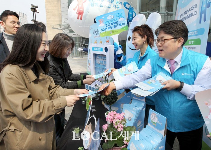 특히 미니 핀볼 게임 이벤트 코너를 마련해 참가자 대상 ▲푸른하늘 만들기 위한 국민 행동요령 ▲고농도 미세먼지 대응 요령 ▲생활 속 미세먼지 저감 실천 수칙 ▲정부의 미세먼지 저감 정책 등의 정보를 전달하며, 이를 적극적으로 실천할 수 있도록 마스크와 물병 등 다양한 기념품도 제공했다.
