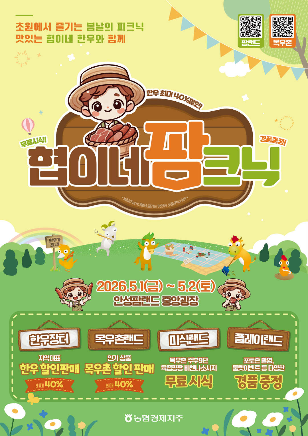 [로컬세계 = 지차수 기자] 농협 축산경제(대표이사 안병우)는 가정의 달을 맞아 5월 1일부터 2일까지 안성팜랜드 중앙광장에서 팝업스토어 ‘협이네 팜크닉’을 운영한다고 밝혔다.