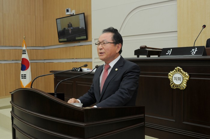 ▲동구의회는 20일 제222회 임시회 제1차 본회의 열고 원용석부의장이 5분 발언을 하고 있다. |