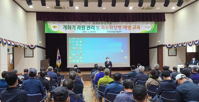 [로컬세계 박상진 기자]경북 의성군은 지난 20일 사과발전연구회원 60명을 대상으로 개화기 과원관리 요령 및 과수화상병 예방 교육을 실시했다고 21일 밝혔다.