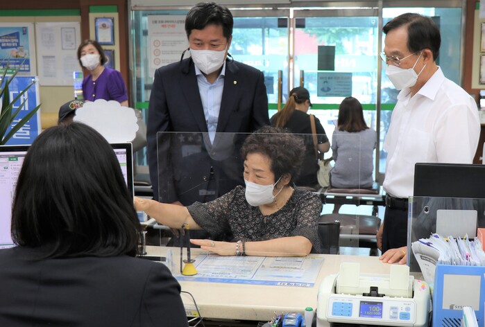 ▲12일 고객이 서서울농협에서 'NH내손으로'를 가입하고 있다. |