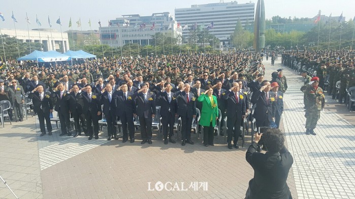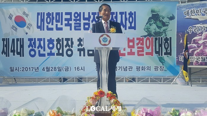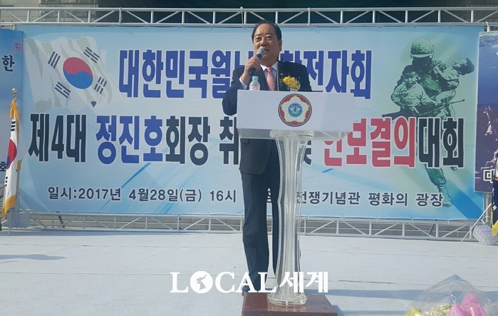 [로컬세계 김재덕 기자]대한민국 월남전참전자회는 28일 서울시 용산 전쟁기념관 평화의 전당에서 안보결의 대회 및 제4기 중앙회 회장 취임식을 가졌다.