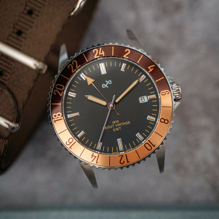 1970 GMT 오토매틱 버건디 에디션은 서로 다른 두 개의 시간대를 동시에 확인할 수 있는 24시간 GMT 컴플리케이션과 날짜 기능, 스위스 메이드의 셀리타 SW330 오토매틱 무브먼트, 버건디와 골드 색상의 베젤이 적용돼 실용성과 심미성을 갖췄다.