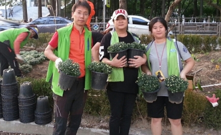 지나는 주민들은 이구동성으로 “수고 하십니다, 동네가 넘 좋아 져요, 국화가 피면 동네가 환해지겠어요”라고 하며 고마움을 전했다.