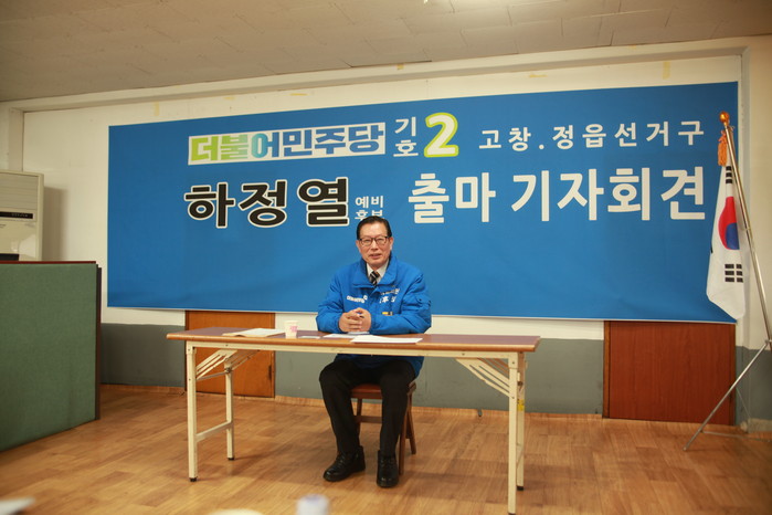 ▲더불어민주당 정읍·고창 하정열 예비후보가 지난 4일 출마 기자회견을 열고 있다. |